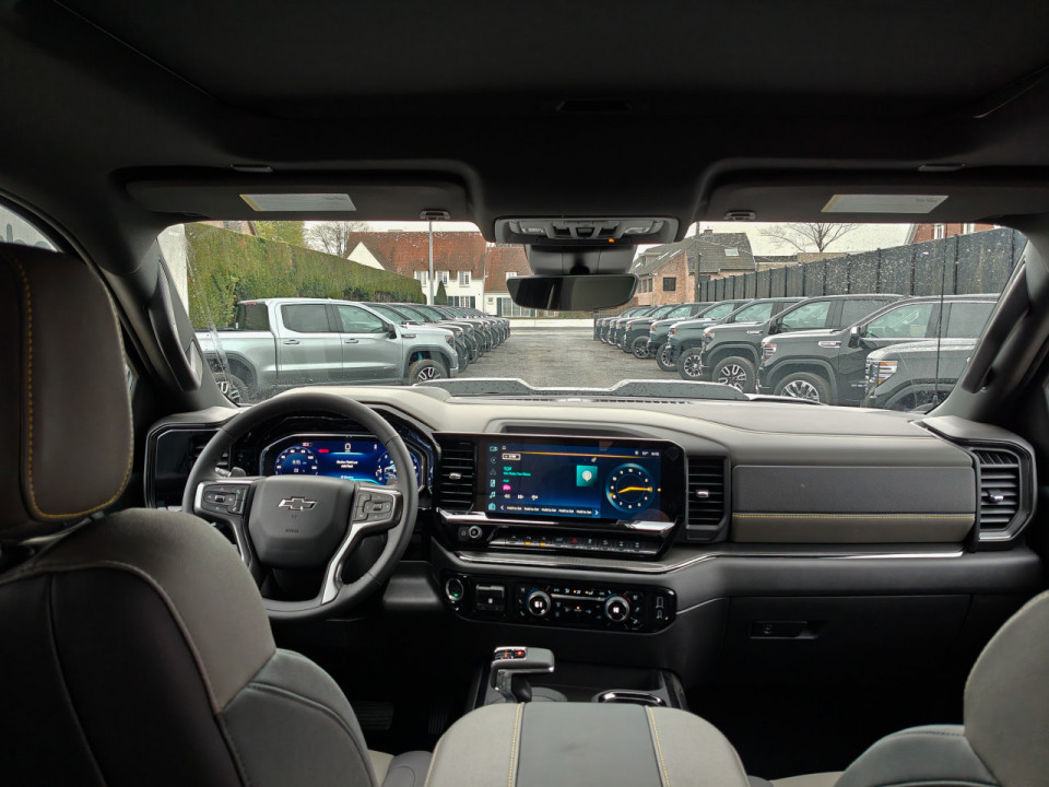 Seat adjuster, driver 10-way power including lumbarWheels, 18" x 8.5" (45.7 cm x 21.6 cm) aluminum machined face with Black Painted spokes and Oxide Gold painted outer ring accentsGlass, deep-tintedKeyless Open and StartWindow, power front/rear, drivers express up/downWindow power sliding rear with defoggerAirbags, Dual-stage frontal airbags for driver and front outboard passengers; Seat-mounted side-impact airbags for driver and front outboard passenger; Head-curtain airbags for front and rear outboard seating positions; Includes front outboard Passenger Sensing System for frontal outboard passenger airbagAll-weather floor linersCornerStep, rear bumperAir conditioning, dual-zone automatic climate controlCenter Console, floorMirrors, outside heated power-adjustableHill Descent ControlWireless ChargingSeats ventilated & heated driver and front outboard passengerSteering wheel wrapped, heated and with mounted controlsAdaptive Cruise Control Note: Subject to errors and prior sale. Only while stocks last. All information is without guarantee and without guarantee of full functionality in Europe. Hinweis: Irrtümer und Zwischenverkauf vorbehalten. Nur solange der Vorrat reicht. Alle Angaben sind ohne Gewähr auf Vollständigkeit und die volle Funktionsfähigkeit in Europe.Chevrolet Infotainment 3 Premium system, 13.4" diagonal HD color touchscreen, includes multi-touch display, AM/FM stereo, Bluetooth streaming audio for music and most phones; featuring Wireless Apple CarPlay and Wireless Android Auto capability for compatible phones, advanced voice recognition, in-vehicle apps, personalized profiles for infotainment and vehicle settingsSkid PlatesWireless phone projectionTailgate standard function manual with EZ Lift, includes power lock and releaseWipers with rainsenseFog lamps frontLED Headlight IntelliBeam with autom. HighBeam on/offDifferential, driver-selectable full-locking front/rearUSB ports, 2, Charge/Data ports located inside center consoleUSB ports, rear, dual, charge-onlyZR2 Suspension Package, High-Performance lifted suspension with Multimatic DSSV dampersFront and Rear Park AssistFollowing Distance IndicatorForward Collision AlertLED Cargo Area LightingRear Cross Traffic BrakingLane Keep Assist with Lane Departure WarningAutomatic Emergency BrakingFront Pedestrian BrakingRear Pedestrian AlertBose Sound System, premium 7-speaker system with Richbass wooferHD Surround Vision Equipment extra (included)Technologay Package (CWM) o Rear Camera Mirror, 15" Diagonal Head-Up Display and adaptive Cruise ControlPower Sunroof (CF5)Mulit-Flex Tailgate (QK2)Chevrolet Infotainment 3 Premium system, 13.4" diagonal HD color touchscreen, includes multi-touch display, AM/FM stereo, Bluetooth streaming audio for music and most phones; featuring Wireless Apple CarPlay and Wireless Android Auto capability for compatible phones, advanced voice recognition, in-vehicle apps, personalized profiles for infotainment and vehicle settings ,Skid Plates ,Wireless phone projection ,Tailgate standard function manual with EZ Lift, includes power lock and release ,Wipers with rainsense ,Fog lamps front ,LED Headlight IntelliBeam with autom. HighBeam on/off ,Differential, driver-selectable full-locking front/rear ,USB ports, 2, Charge/Data ports located inside center console ,USB ports, rear, dual, charge-only ,ZR2 Suspension Package, High-Performance lifted suspension with Multimatic DSSV dampers ,Front and Rear Park Assist ,Following Distance Indicator ,Forward Collision Alert ,LED Cargo Area Lighting ,Rear Cross Traffic Braking ,Lane Keep Assist with Lane Departure Warning ,Automatic Emergency Braking ,Front Pedestrian Braking ,Rear Pedestrian Alert ,Bose Sound System, premium 7-speaker system with Richbass woofer ,HD Surround Vision